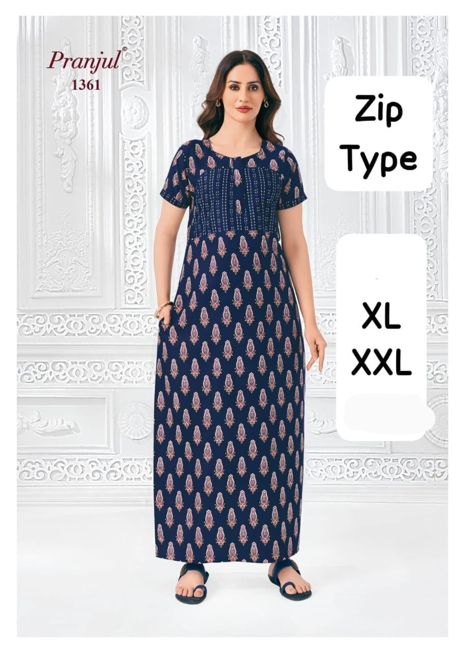Elegant navy blue zip-type nightwear from Pranjul , featuring a paisley print and available in sizes XL, XXL.